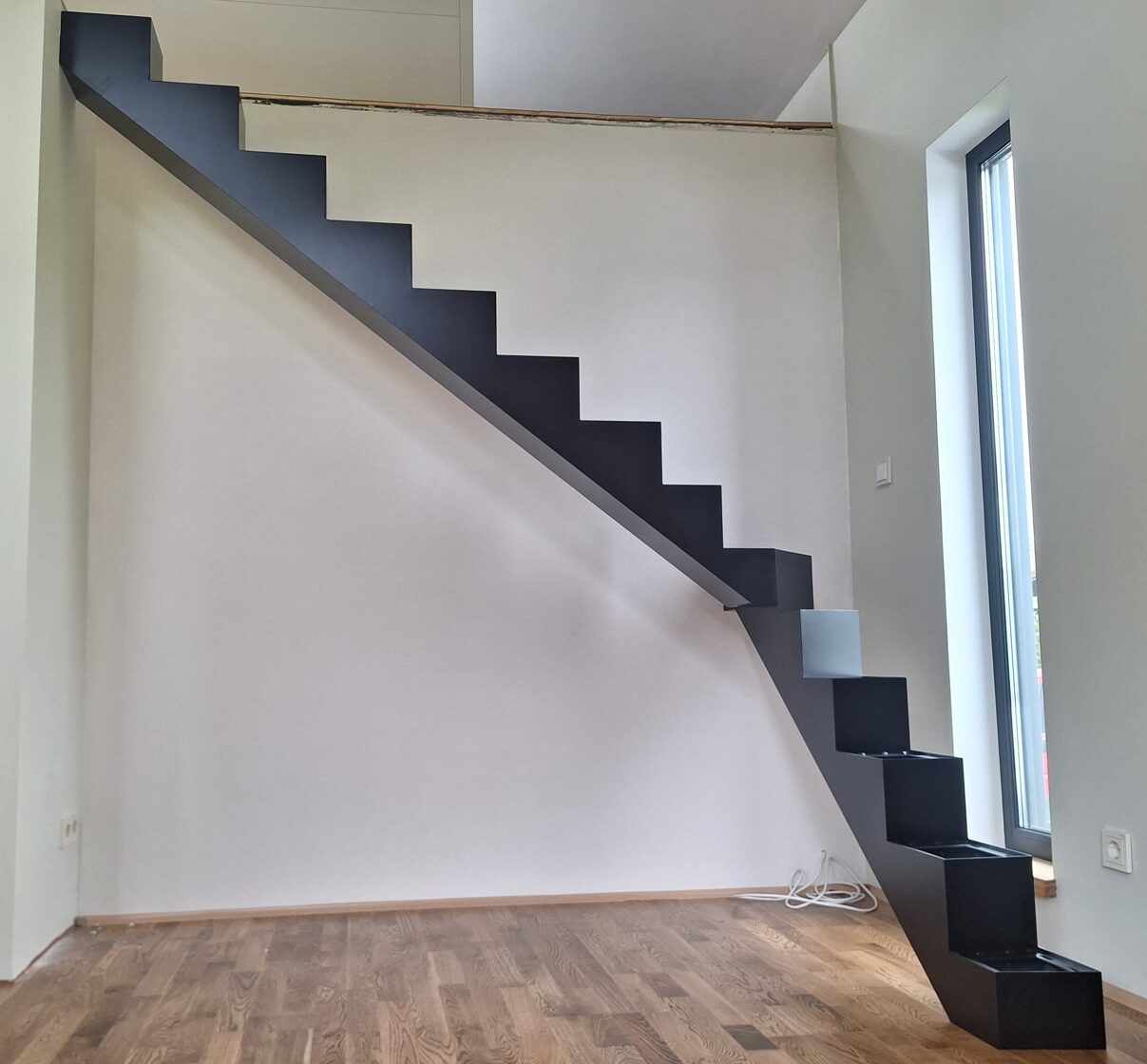 U formos plieninė laiptąsija, gruntuota ir dažyta juoda spalva -
